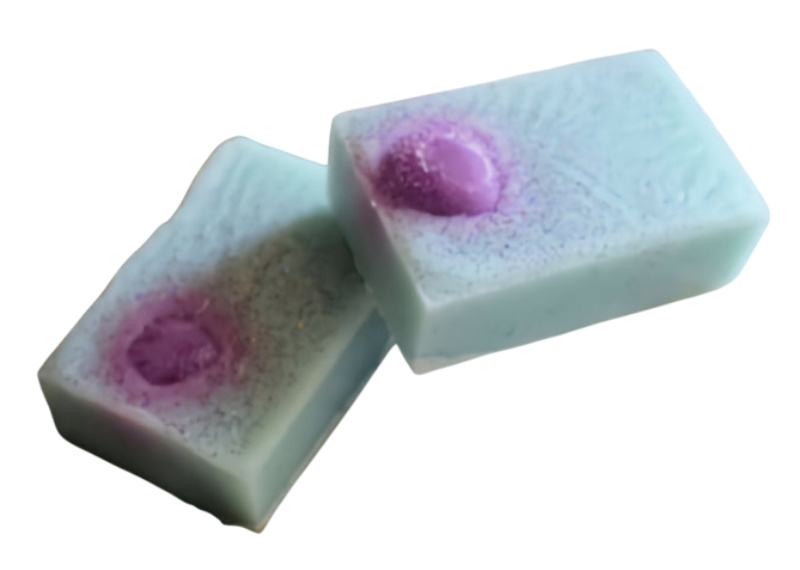 SLS Free Soap Slice - Ingrediënten: Aqua, Propyleenglycol, Natriumstearaat, Natriumlaurethsulfaat, Glycerine, Sucrose, Natriumcocoaat, Natriumxyleensulfonaat, Stearinezuur, Tetranatrium EDTA, Tetrasodium etidronate, Butyrospermum Parkii (Shea Boter) Parfum. Biologisch afbreekbare glitter. CI77891. CI19140. CI15985. CI42090. CI14720. CI45100. Min. 95 g